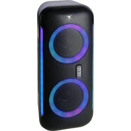 prenosni zvočnik • moč 40 W • glasba prek Bluetootha • brezžično stereo združevanje • odpornost IPX5 • vhod AUX • vhod USB • reža za kartico SD • 7 ur delovanja baterije • zmogljivost baterije 3000 mAh