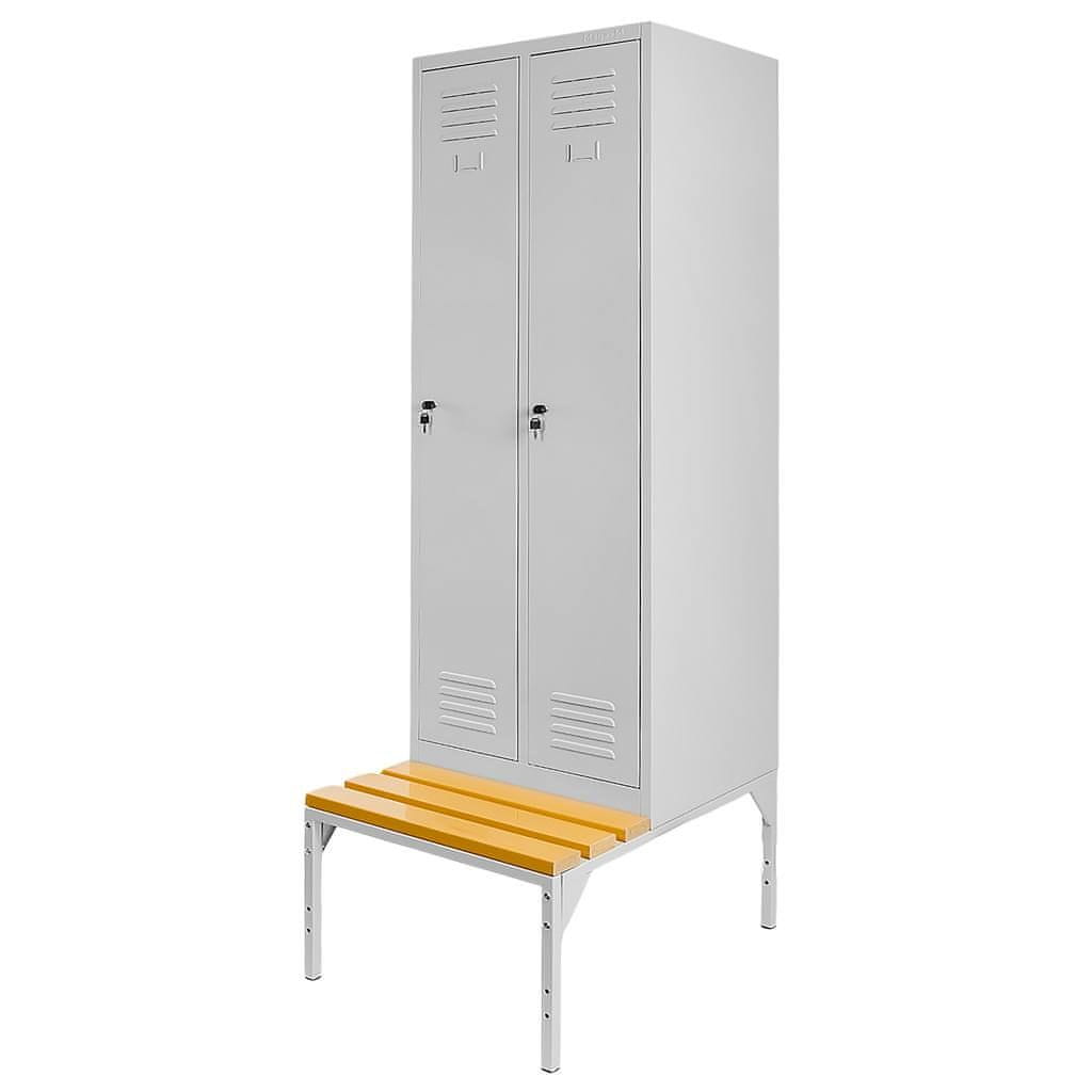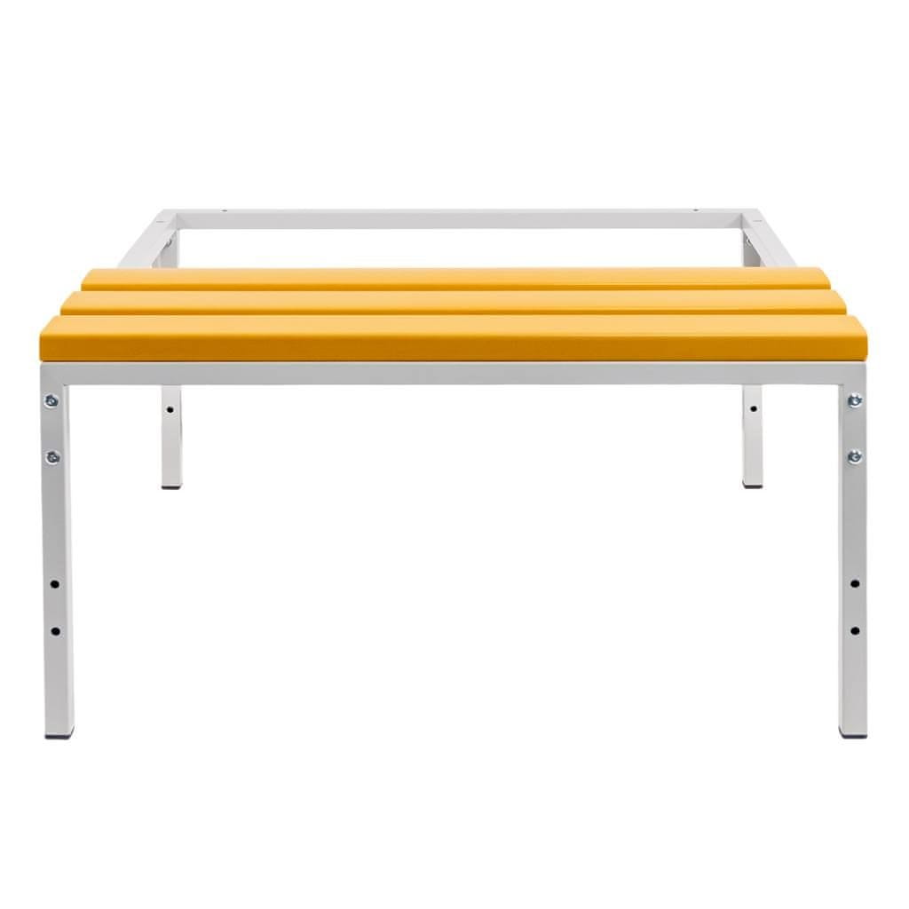 Klop za omaro OHS znamke Mega-M je praktična in trdna rešitev, zasnovana za udobje uporabnikov in učinkovito izrabo prostora v garderobah za zaposlene in družabnih prostorih. Dimenzije 80×80×43 cm zagotavljajo optimalno prileganje standardnim omaricam za varnost in zdravje pri delu, pa dobro premišljena zasnova omogoča neposredno pritrditev omare na stabilen kovinski okvir . Sedež je izdelan iz trpežnih WPC plošč (kompozit lesa in plastike), ki so zelo odporne na vlago, praske in vsakodnevno uporabo, hkrati pa zagotavljajo enostavno čiščenje in estetski videz. Prost prostor pod omarico omogoča priročno shranjevanje čevljev ali drugih predmetov, poleg tega pa znatno poenostavi čiščenje. Je popoln dodatek za vsako garderobo – v podjetju, fitnes klubu, šoli ali športnem objektu.