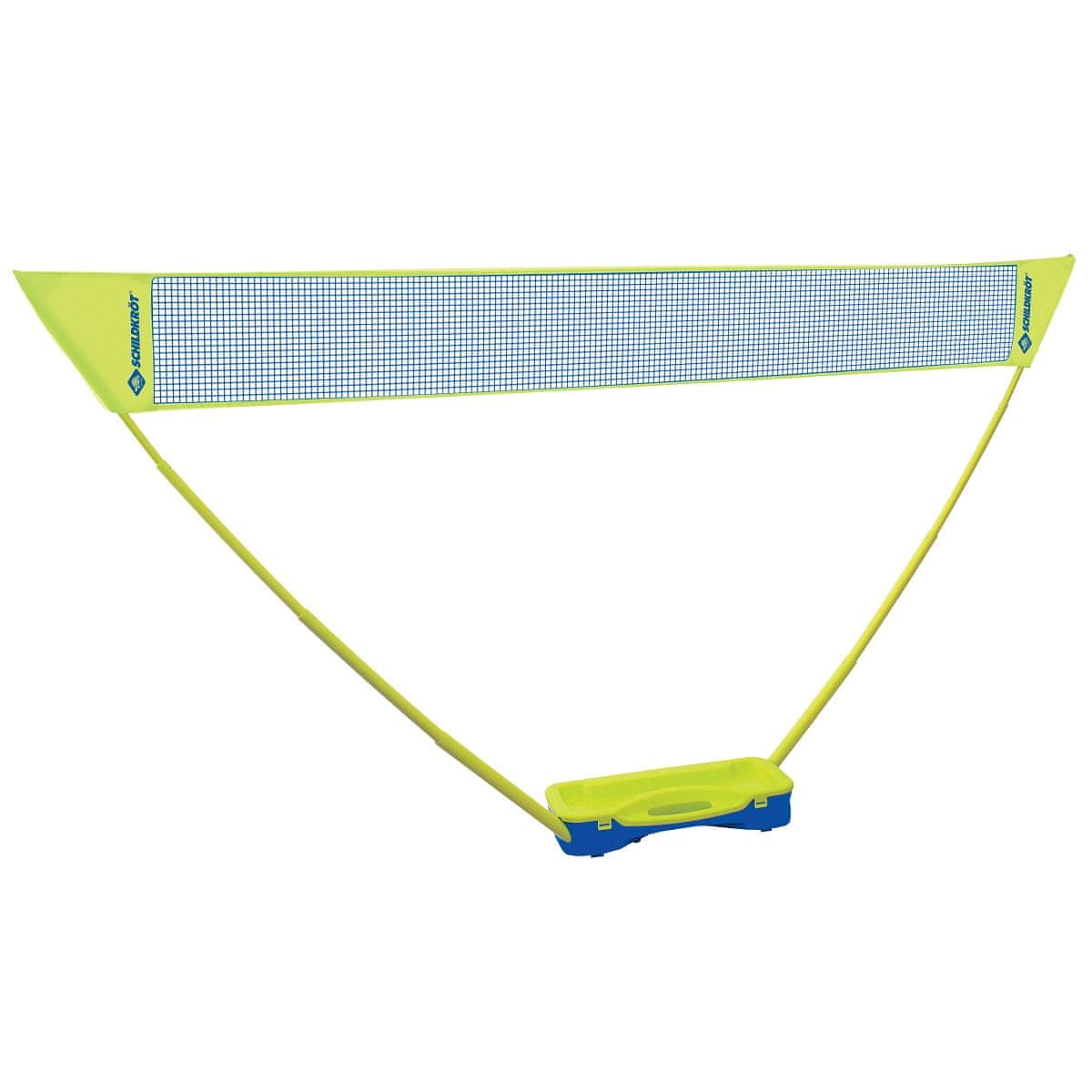 Kompaktni set za badminton SCHILDKROT je idealen set za dva igralca, ki ponuja popolno opremo za rekreativno igro. Komplet vsebuje 2 loparčka, 2 žogici, inovativno mrežo s teleskopskimi drogovi in praktičen plastični kovček, ki poleg shranjevanja posameznih komponent služi tudi kot stojalo za mrežo. Tehnični podatki: 2× lopar z gredjo iz kaljenega jekla 2× plastična mreža za žoge 295 × 155 cm plastične teleskopske palice za pritrditev mreže plastični kovček kot praktičen transportni kovček kovček lahko služi tudi kot stojalo za mrežo