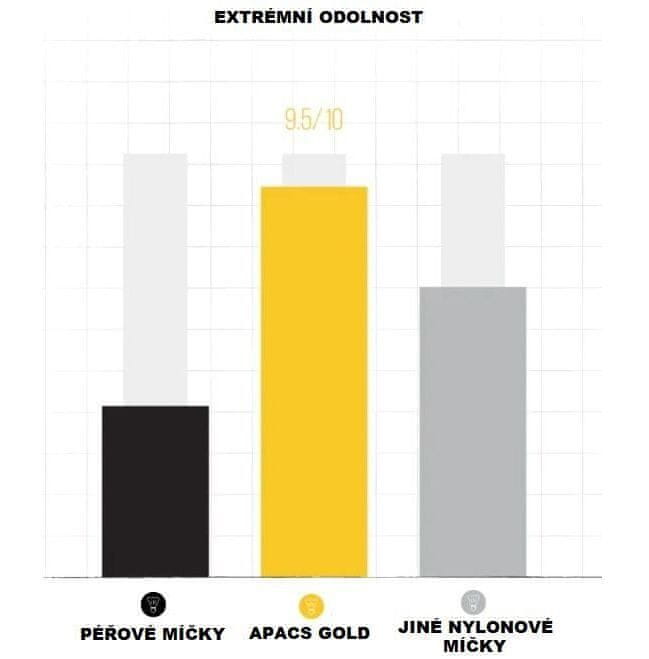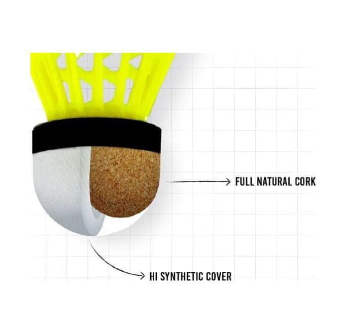 Badmintonski pokali Gold 916 podjetja Apacs, ki je znano predvsem v azijskih državah, kjer je badminton nacionalni šport. Serija Apacs Gold je izdelana iz visokokakovostnega materiala za neprekinjeno igro. Testirani so za 100-odstotno rotacijo, zagotavljajo stabilen let, ravnotežje, odlično vidljivost in vzdržljivost. Gold 916 so izdelani iz visokokakovostnega rumenega najlona s 100-odstotno polno naravno plutovinasto glavo. Žogice so primerne za tekmovalne igralce in športne klube, zaradi svoje konkurenčne cene pa bodo svoje privržence našle tudi med začetniki in rekreativnimi igralci. Tuba vsebuje 6 kosov. GOLD 916: – material: visokokakovostno najlonsko krilo + 100 % popolnoma naravna plutovinasta osnova – zelena barva (tople razmere) – primerna za temperature od 22 do 33 °C – odlične lastnosti leta – dolga življenjska doba – pakiranje po 6 kosov https://www.apacs-badminton.co.uk/