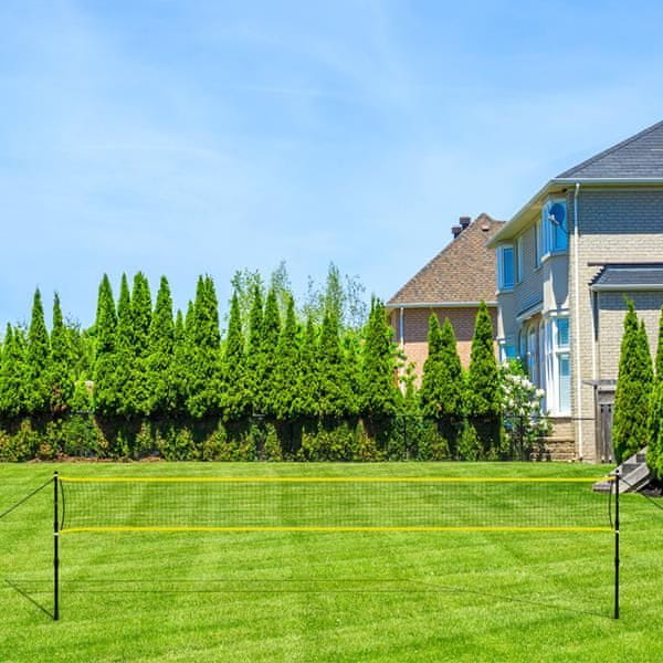 NT310 Nils je mreža za rekreativni badminton. To bo odličen dodatek za uporabo pri klasičnih igrah na prostem. Mrežo lahko postavite in zložite v samo nekaj minutah, brez kakršnega koli orodja. Izdelek se sestavi tako, da se v tla zabijejo stebrički, ki služijo kot okvir in na katere se pritrdi mreža. Stebrički so teleskopski in ponujajo možnost obešanja mreže na dve višini. Tako mreža kot okvir sta odporna na vremenske razmere. Mreža je dolga preko 6 m, tako da omogoča igranje dveh tekem hkrati. Specifikacija: Dimenzije: 6,3 m x 1,2 – 1,6 m Material: MREŽA: netkana tkanina + PE OKVIR: 22 mm x 0,5 mm jeklene cevi Opombe: Ni namenjeno za komercialno uporabo 24-mesečna garancija Uvoznik: Abisal Sp. z o. o. | Poljska | 41–807 Zabrze | st. Pyskowicka 17 | e-pošta: abisal@abisal.pl Abisal Sp. z o. o. izjavlja, da so izdelki, ki jih prodaja podjetje, varni in izpolnjujejo zahteve Zakona o splošni varnosti proizvodov z dne 12. decembra 2003. (Uradni list z dne 31. decembra 2003)