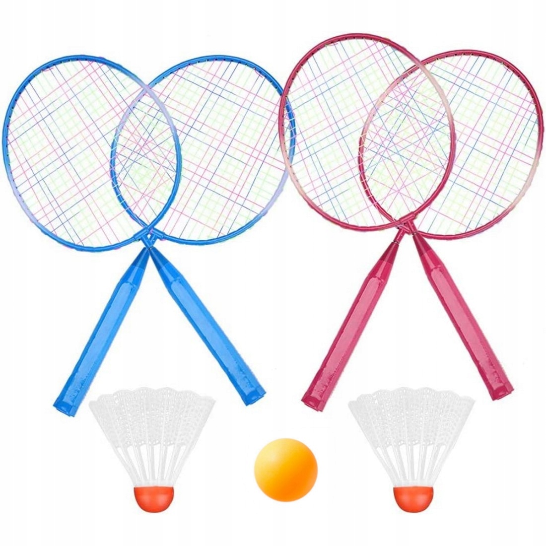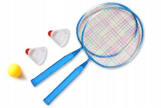 Sestavljen je iz dveh kovinskih loparjev, dveh perjanic in plastične žogice.