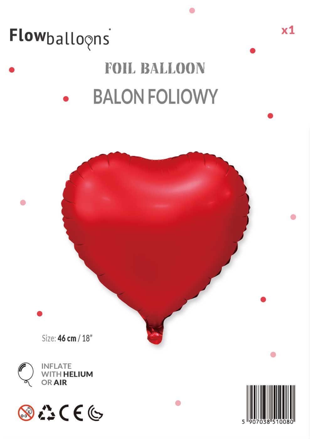 Visokokakovosten folijski balon v obliki srca, izdelan iz trpežne folije, odporne na poškodbe. Ta eleganten balon ima čudovit mat zaključek v intenzivno rdeči barvi, ki mu daje razkošen videz.