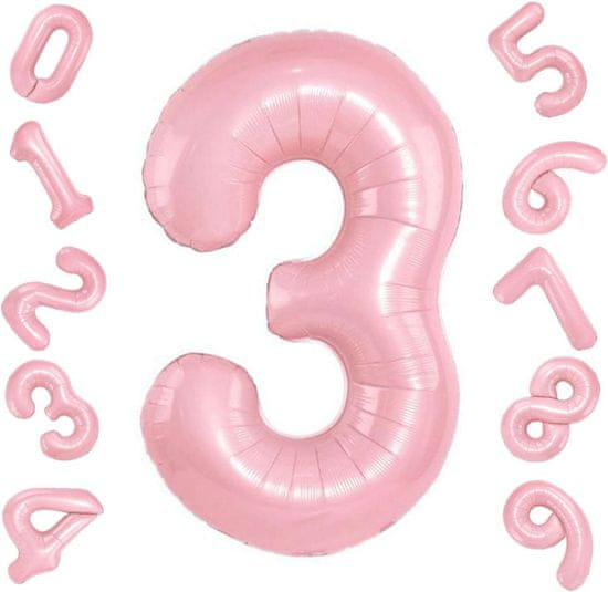 Rojstnodnevni folijski balon številka 3 roza 110 cm Celoten opis