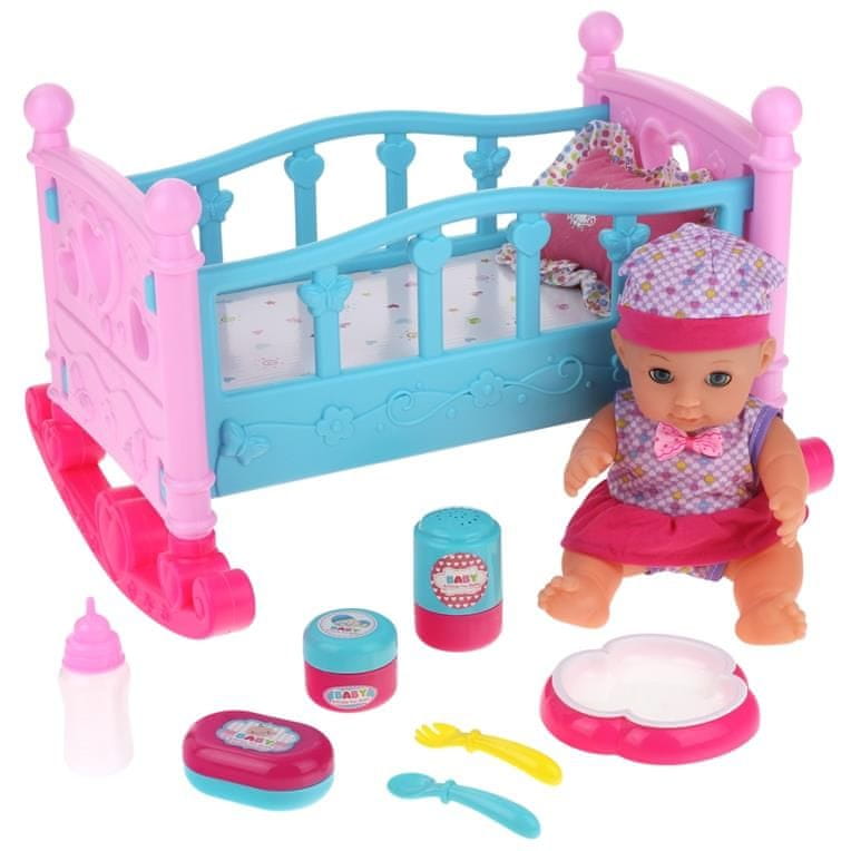 Punčka z zibelko je popoln komplet za deklice, ki se rade igrajo družine. S tem kompletom bodo lahko skrbele za majhnega dojenčka in se počutile kot prave mame. Deklice med igranjem s punčkami razvijajo spretnosti skrbi in nege ter se bodo ure in ure čudovito zabavale. Komplet vključuje zibelko, v kateri lahko vsaka mamica ziba svojega dojenčka, da zaspi. Z odstranitvijo tekalnih stranic z zibelke jo lahko spremenite v posteljo, v kateri lahko dojenček sedi in se igra.