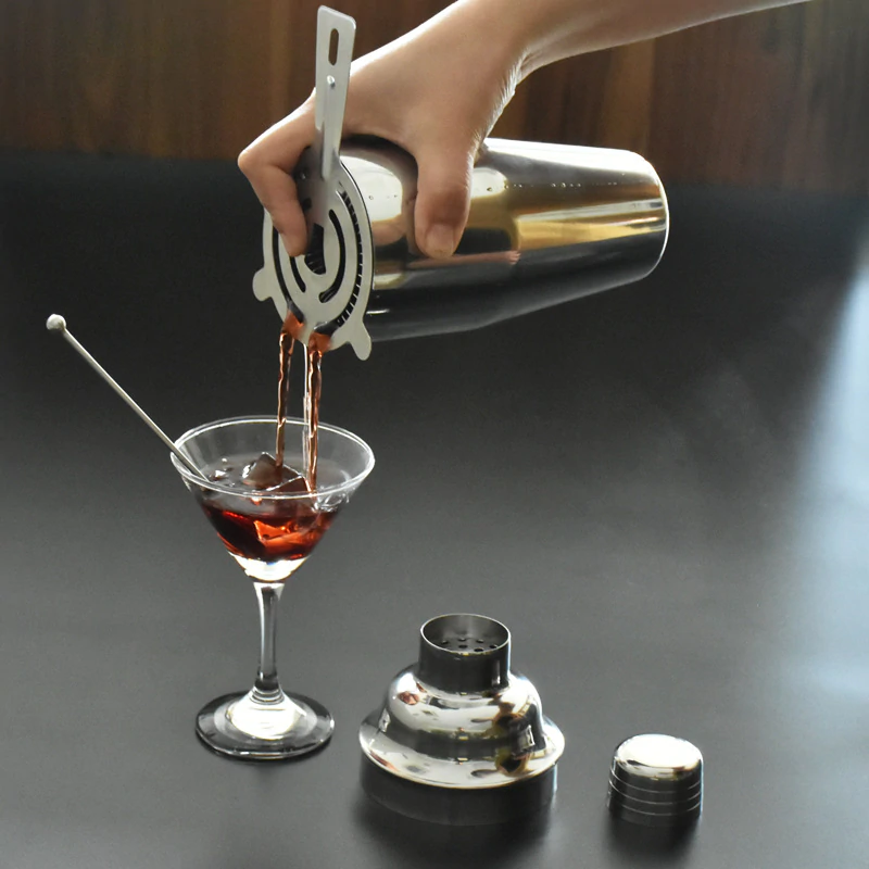 Barmanov filter za pijačo s ploščatim ročajem je odličen pripomoček za uporabo v profesionalnem baru kot tudi v sodobnem domu.
