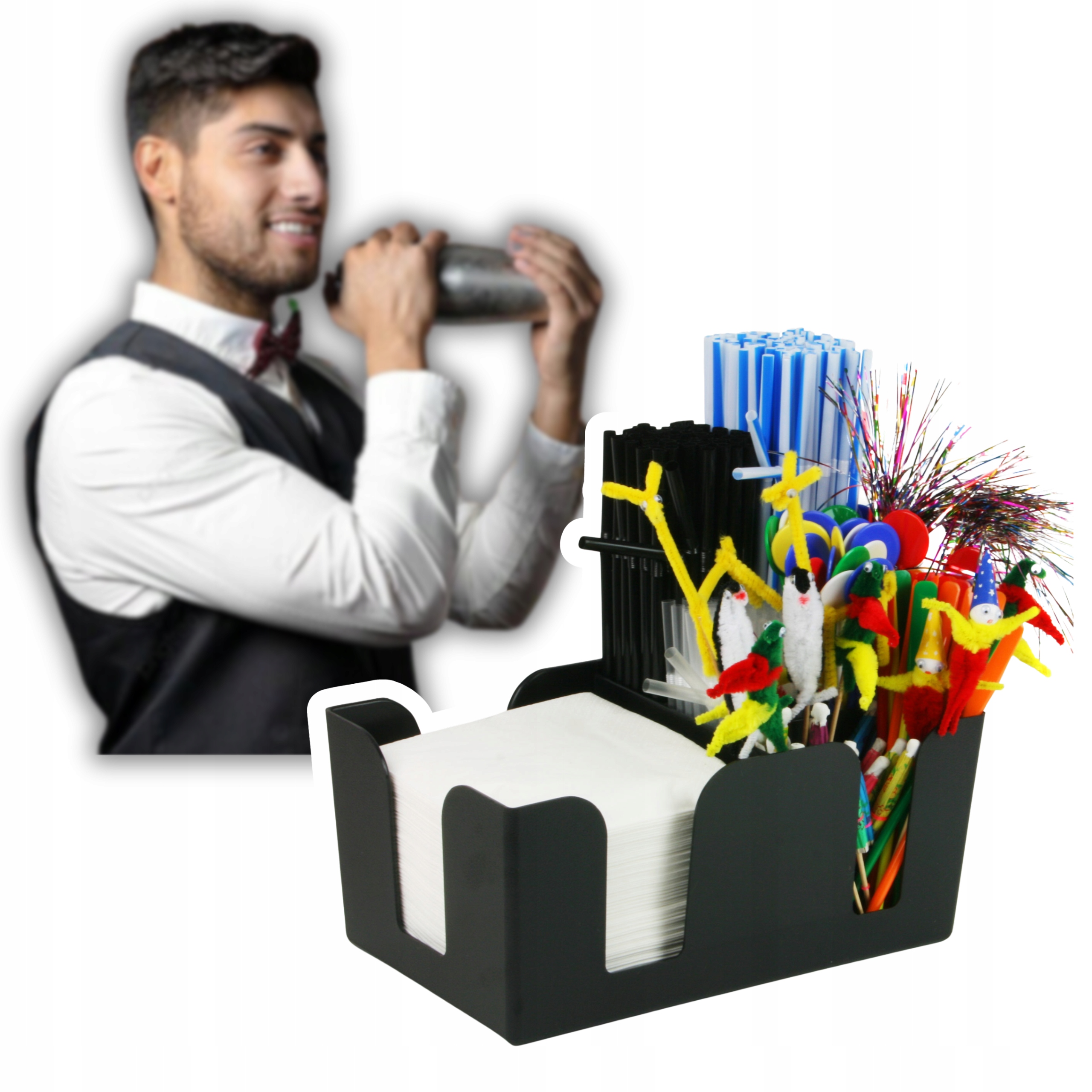 Ali imate težave z organiziranjem barskih dodatkov, zaradi česar vam je težko hitro in učinkovito pripraviti pijačo? Naš posodica za dodatke s črno palico vam bo pomagala ohranjati vaš pult urejen tako, da bo zagotovil enostaven dostop do vseh potrebnih orodij. Zahvaljujoč temu bo vaše delovno mesto postalo bolj funkcionalno in prihranili boste čas, s poudarkom na popolni strežbi pijač.