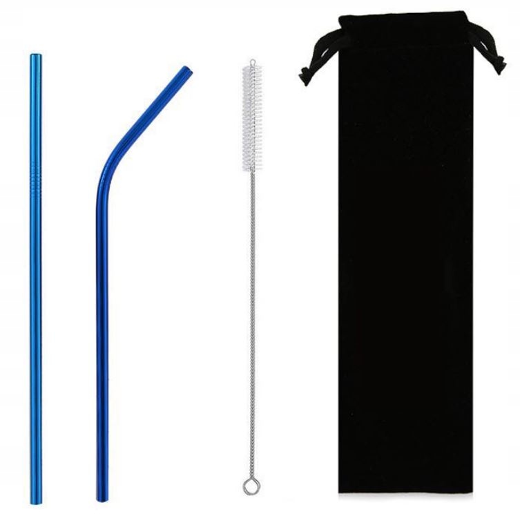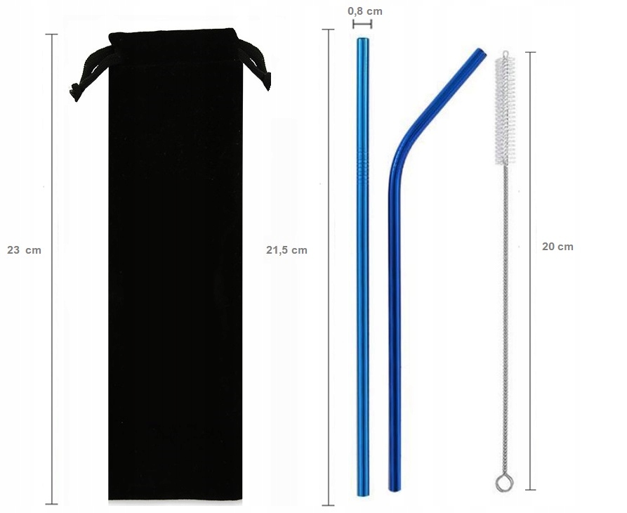 Set 2 modrih jeklenih slamic 215×8 mm, vrečke in čistila