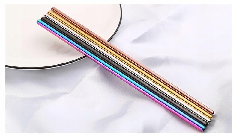 - 5 ravnih slamic v naslednjih barvah: mavrična, šampanjec, zlata, vijolična in srebrna