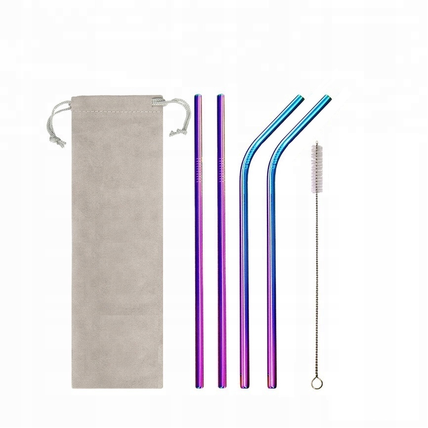 Kovinske slamice – set 4 kosov 215×8 mm – mavrica Celoten opis