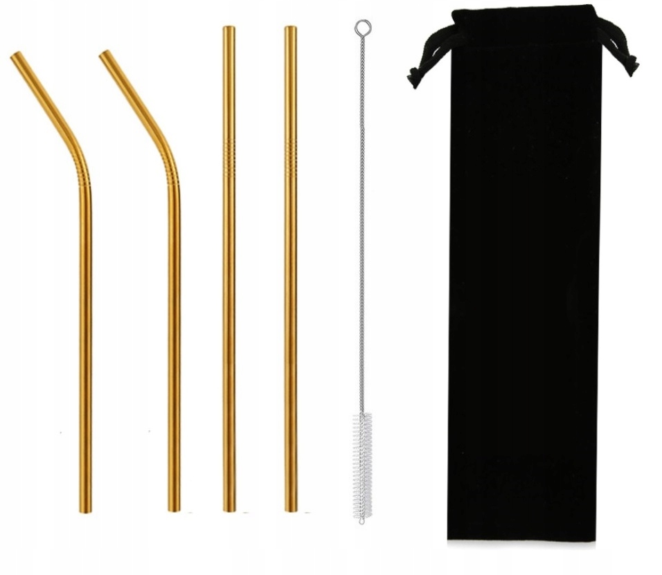Set 4 zlatih jeklenih slamic 215×8 mm, vrečke in čistila