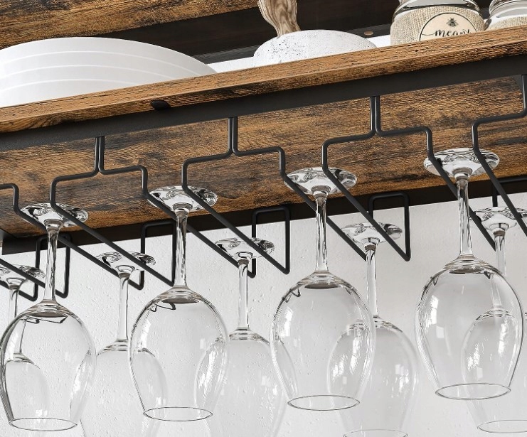 shumee Polica za vino in kozarce, LESENA vinska omarica LOFT