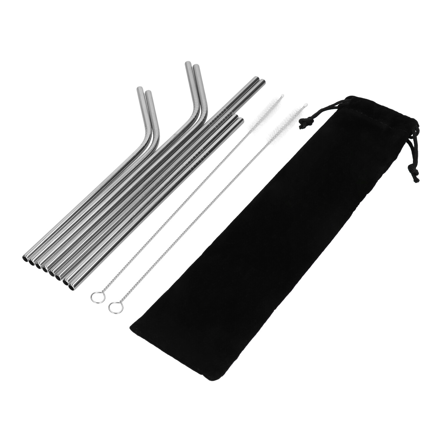 Set 8 srebrnih jeklenih slamic, 2 čistil in vrečke