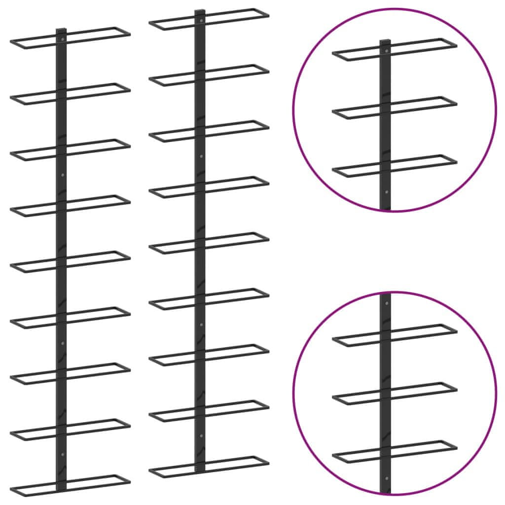 Vidaxl Stenska stojala za vino za 18 steklenic 2 kosa črno železo
