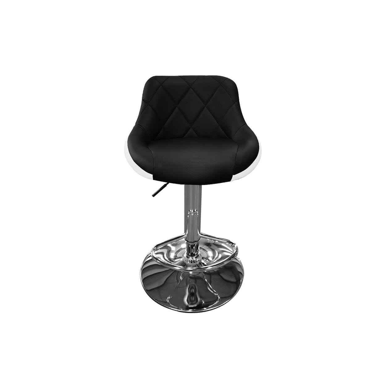 Stol ima praktično oporo za noge iz kromirane kovine. Krožna osnova in osrednja noga sta iz kroma v sijaju.