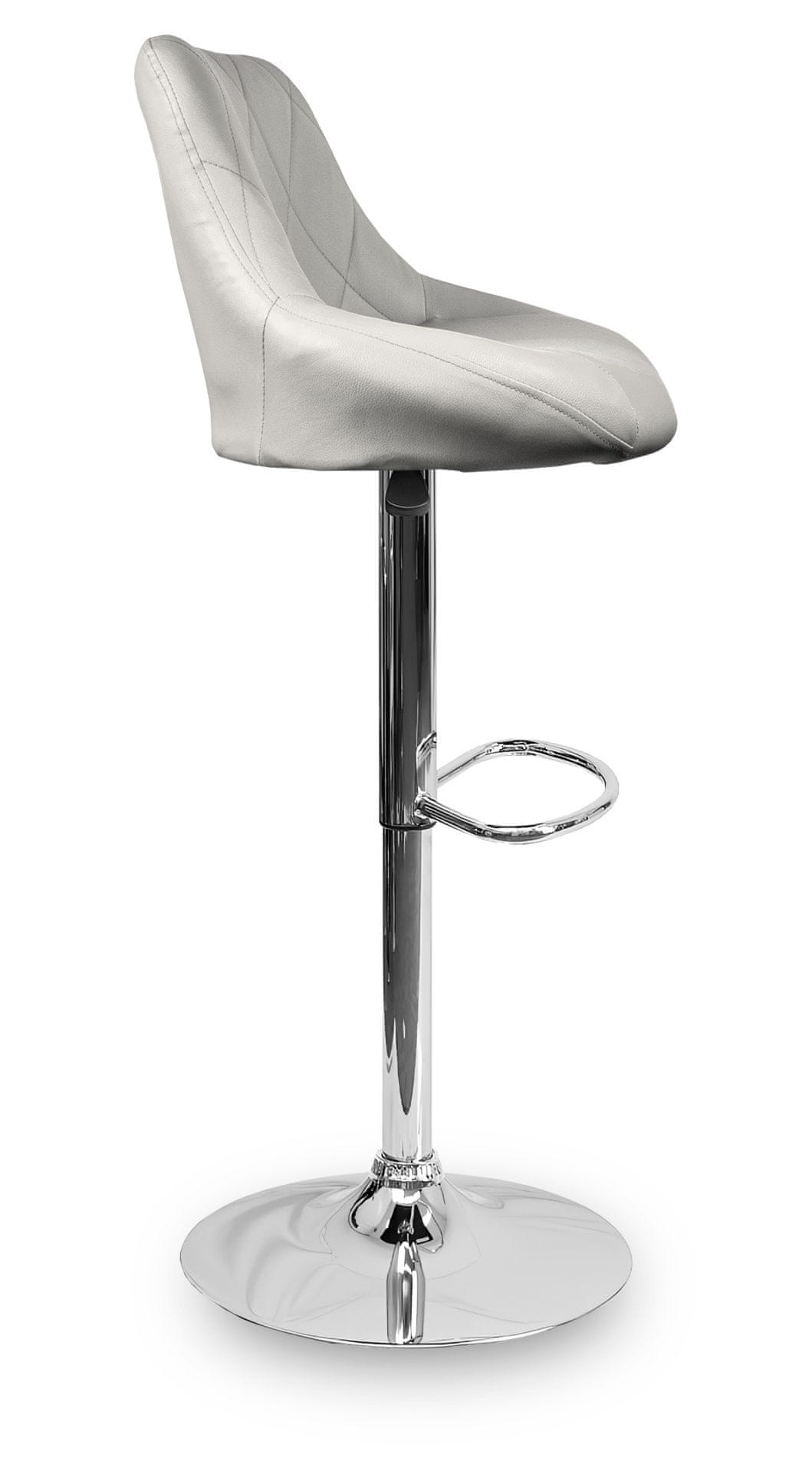Stol ima praktično oporo za noge iz kromirane kovine. Krožna osnova in osrednja noga sta iz kroma v sijaju.