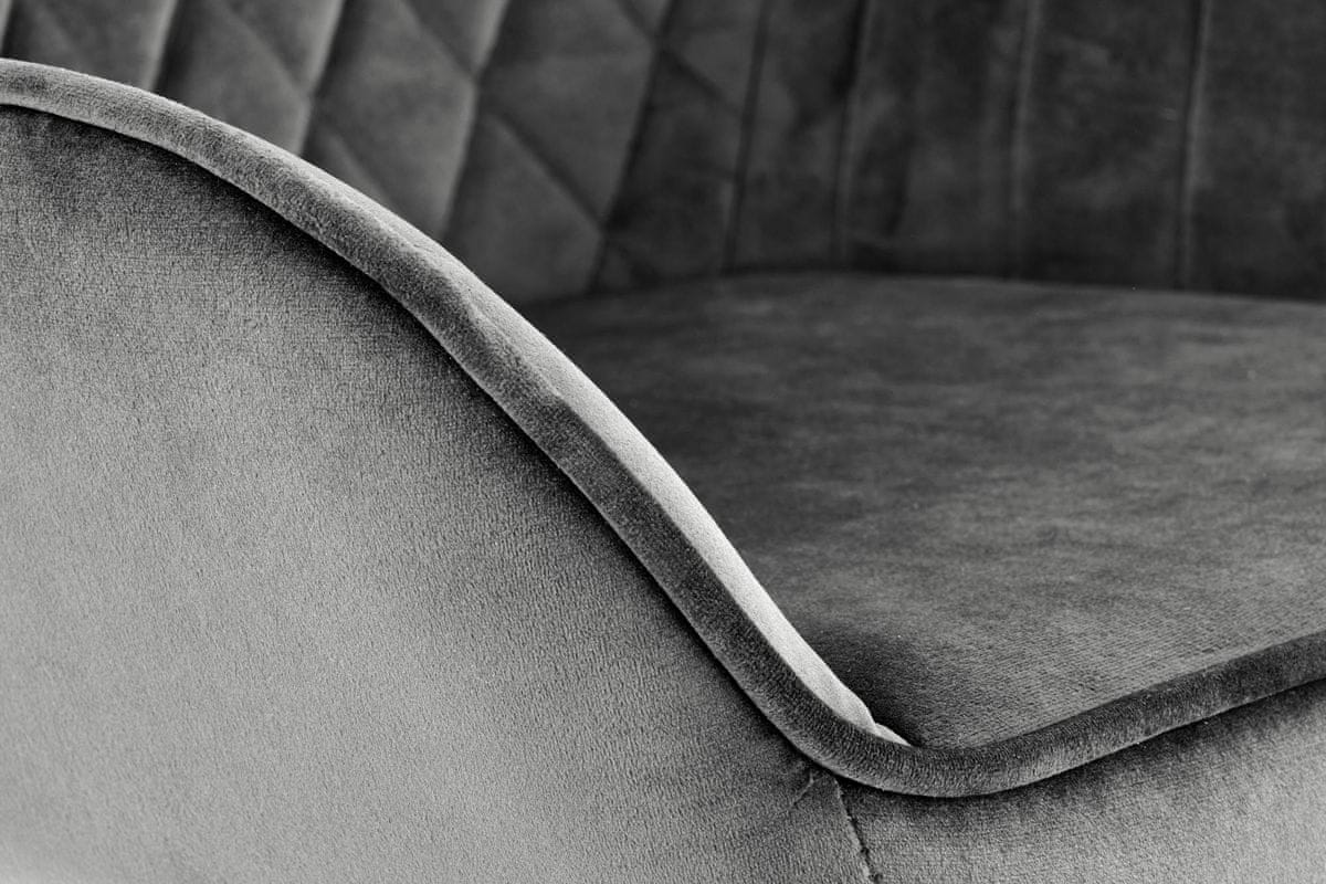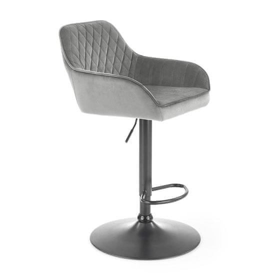 Barski stol H-103 bo odličen praktičen pomočnik in eleganten dodatek vaši kuhinji ali jedilnici. Primeren je tudi za postavitev v kavarnah, restavracijah in drugih prostorih. Stabilna noga stola je izdelana iz prašno barvanega jekla v črni barvi. Sedežna površina z lepo prešitim naslonjalom je oblazinjena v visokokakovostno žametno blago brezčasne sive barve. Višina stola je nastavljiva z ročico, ki se nahaja pod sedežem. Dimenzije stola so (ŠxGxV): 55×55×92–114 cm, višina sedeža pa je nastavljiva od 62 do 84 cm. Stol se dostavi razstavljen.