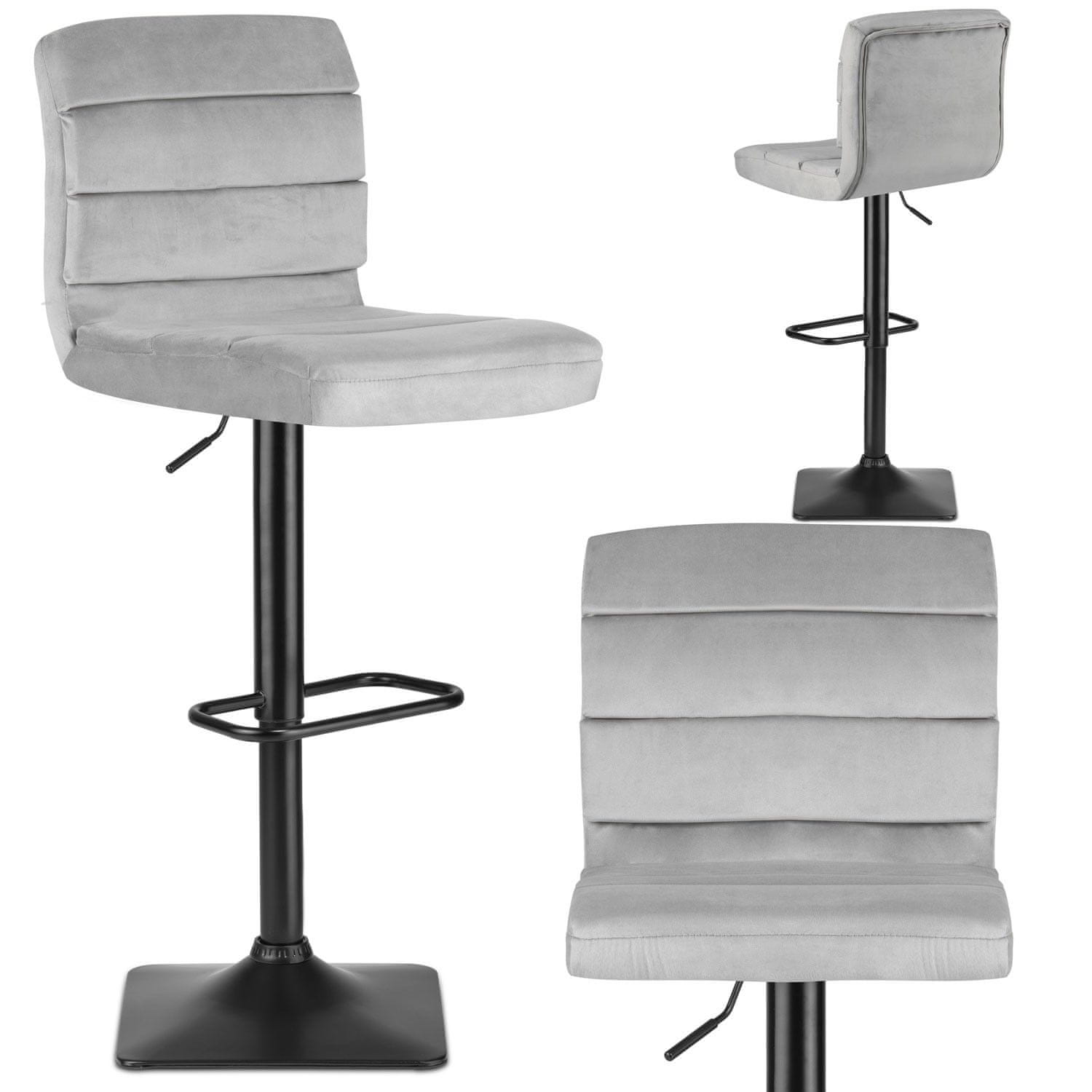 Stol izstopa z žametnim sedežem, udobnim naslonom in kromiranim naslonom za noge, intuitivno nastavitev višine s plinskim dvigalom ter stabilnim kvadratnim podnožjem. Vsaka podrobnost je premišljena za maksimalno udobje.