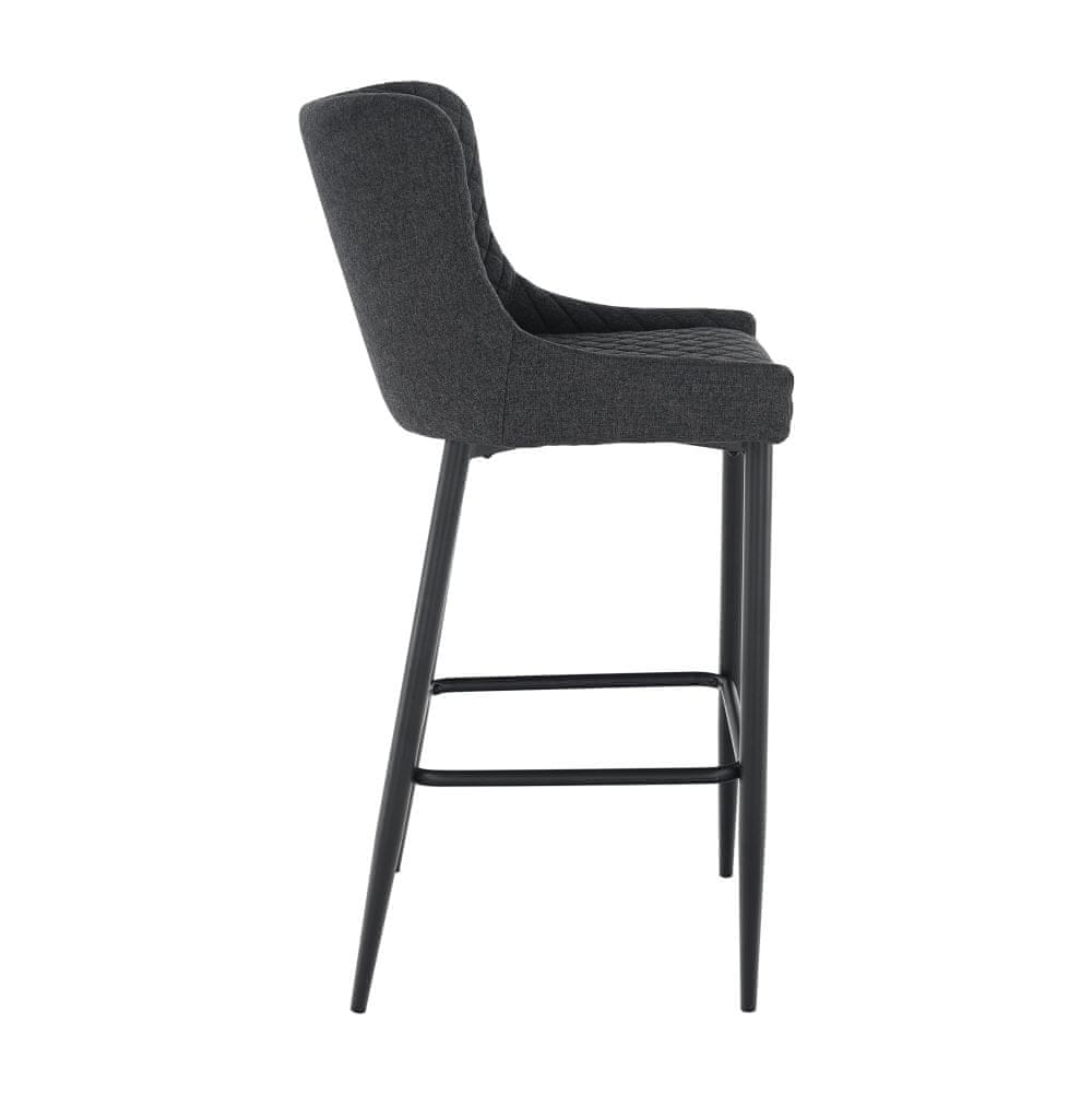 Utelešenje elegance in stila je barski stol CESARIA. V vašo kuhinjo in jedilnico bo prinesel nezmotljiv dizajn in bo zaradi svojega udobja poskrbel za prijetnejše obedovanje. Odlično bo videti na točilnem pultu ali mizi. Prešit sedež je oblazinjen v sivo blago, njegovo stabilnost pa zagotavljajo črne kovinske noge, ki so ojačane z oporo za noge. Njegove skupne mere (ŠxGxV): 47×57×105 cm, višina sedeža je 75,5 cm, globina sedeža je 42 cm, njegova največja nosilnost je 120 kg. Sedenje s prijatelji ob vinu ali dobra jutranja kava z družino? Brez težav z barskim stolom Cezaria.
