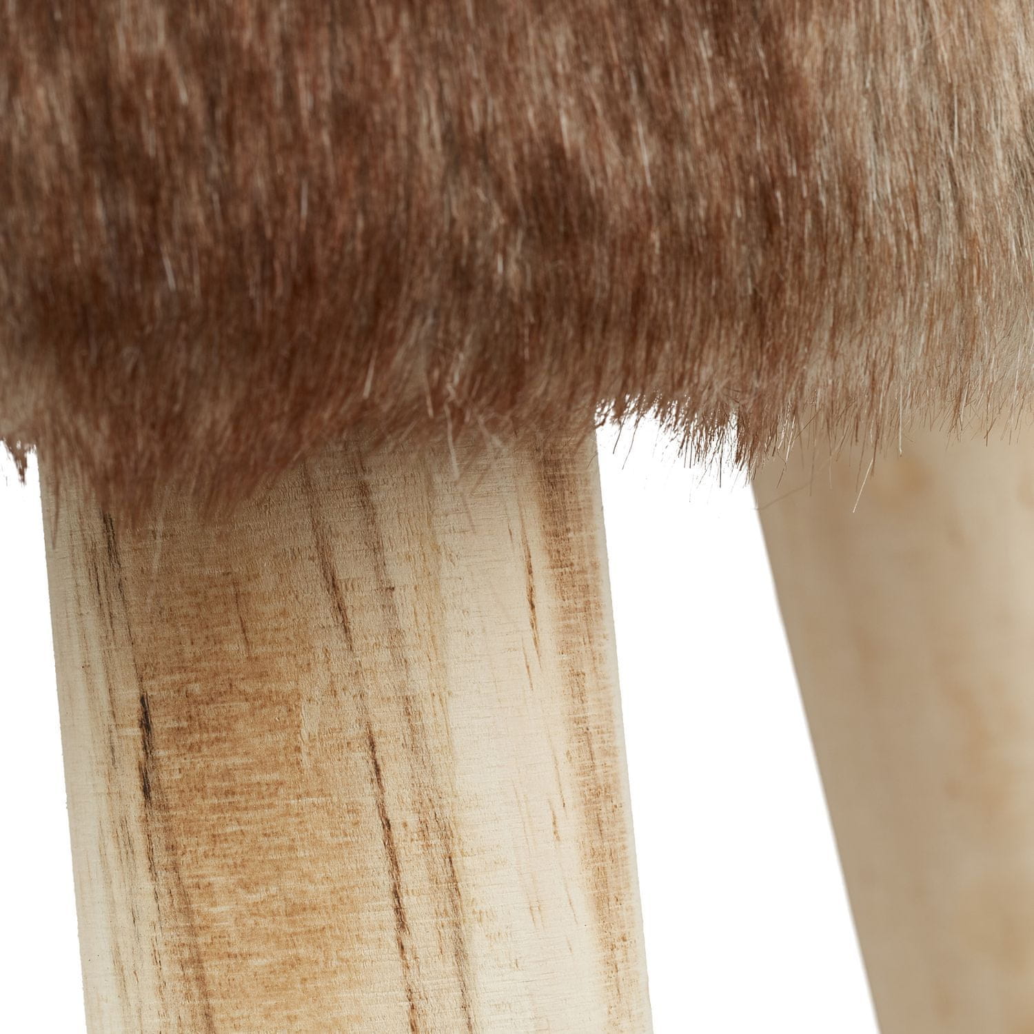 Odkrijte popolno mešanico rustikalnega šarma in funkcionalnosti s tem okroglim krznenim taburejem, idealnim za udobne domove. Njegove noge iz pravega lesa in mehko umetno krzno ustvarjajo toplo, vabljivo vzdušje, ki spominja na alpske koče.
