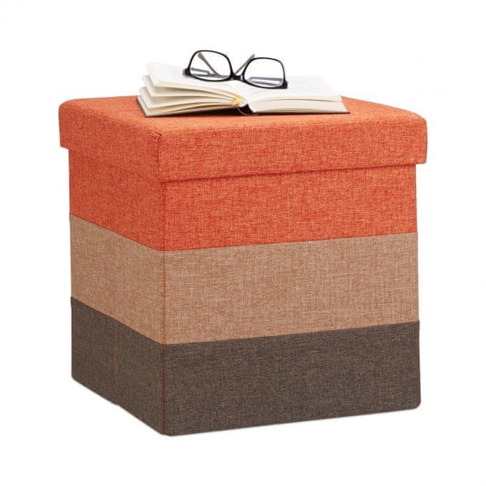 Oblazinjen tabure zagotavlja udobno sedenje in hkrati tudi rešitev za shranjevanje, kot nalašč za dodatne goste. Njegov živahen črtast vzorec doda dekoracijo vsakemu prostoru.