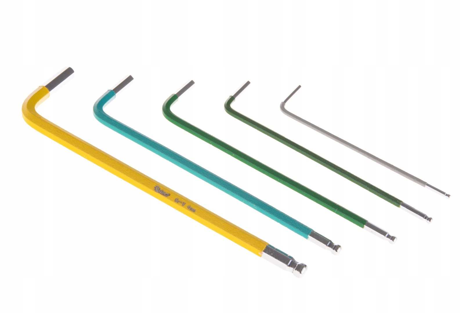 Zahvaljujoč krogličnim konicam lahko ključ upravljate pod kotom 25 stopinj, kar olajša dostop do težko dostopnih mest. Komplet vsebuje 9 ključev v različnih barvah, kar omogoča hitrejše razlikovanje med velikostmi.