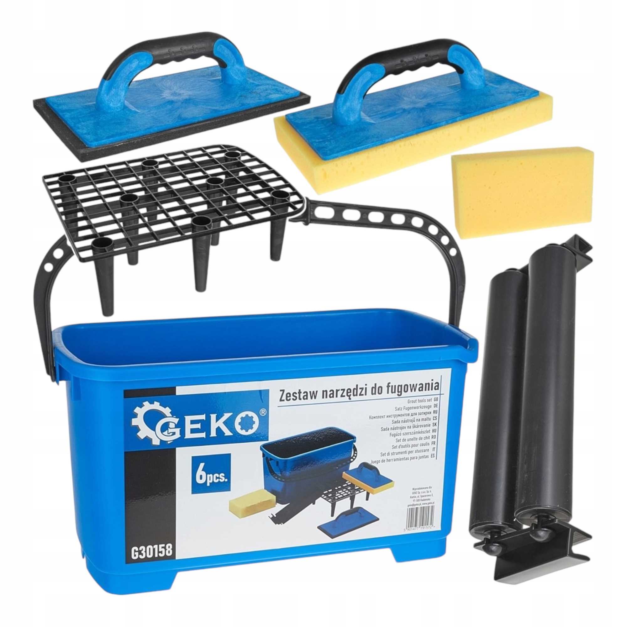 6-delni komplet za polaganje ploščic z orodjem za fugiranje, vedrom GEKO in pakirnim strojom