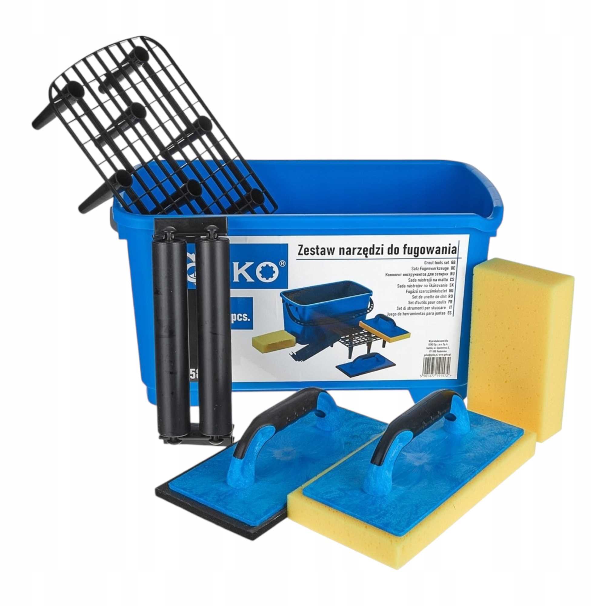 Ta komplet je zasnovan za maksimalno učinkovitost in enostavno uporabo. Zahvaljujoč visokokakovostnemu orodju postane fugiranje hitro, natančno in prijetno. Vedro z rešetko in valji zagotavlja enostavno uporabo, odpravlja težavo z odvečno vodo, kar ima za posledico natančnejšo in estetsko privlačno površinsko obdelavo. Gladilke in gobice, prilagojene različnim fazam polaganja ploščic, omogočajo celovit postopek – od fugiranja, čiščenja do končne obdelave.