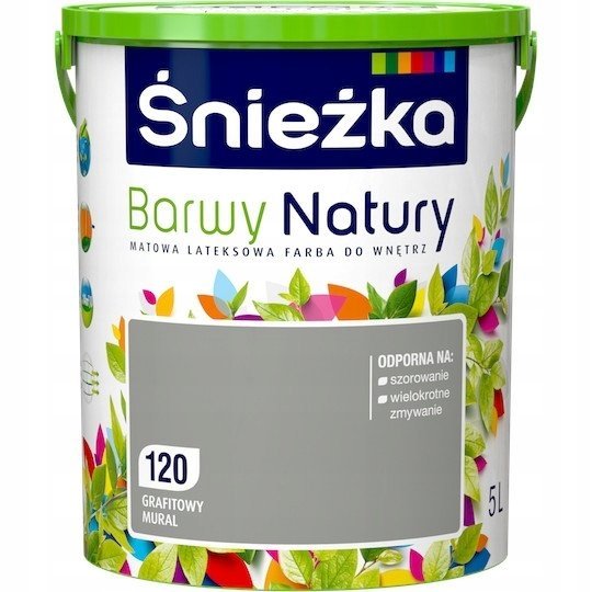 Śnieżka Barwy Natury v barvi Grafitna muralna barva 120 je visokokakovostna lateks emulzijska barva, namenjena dekorativnemu in zaščitnemu barvanju notranjih sten in stropov.
