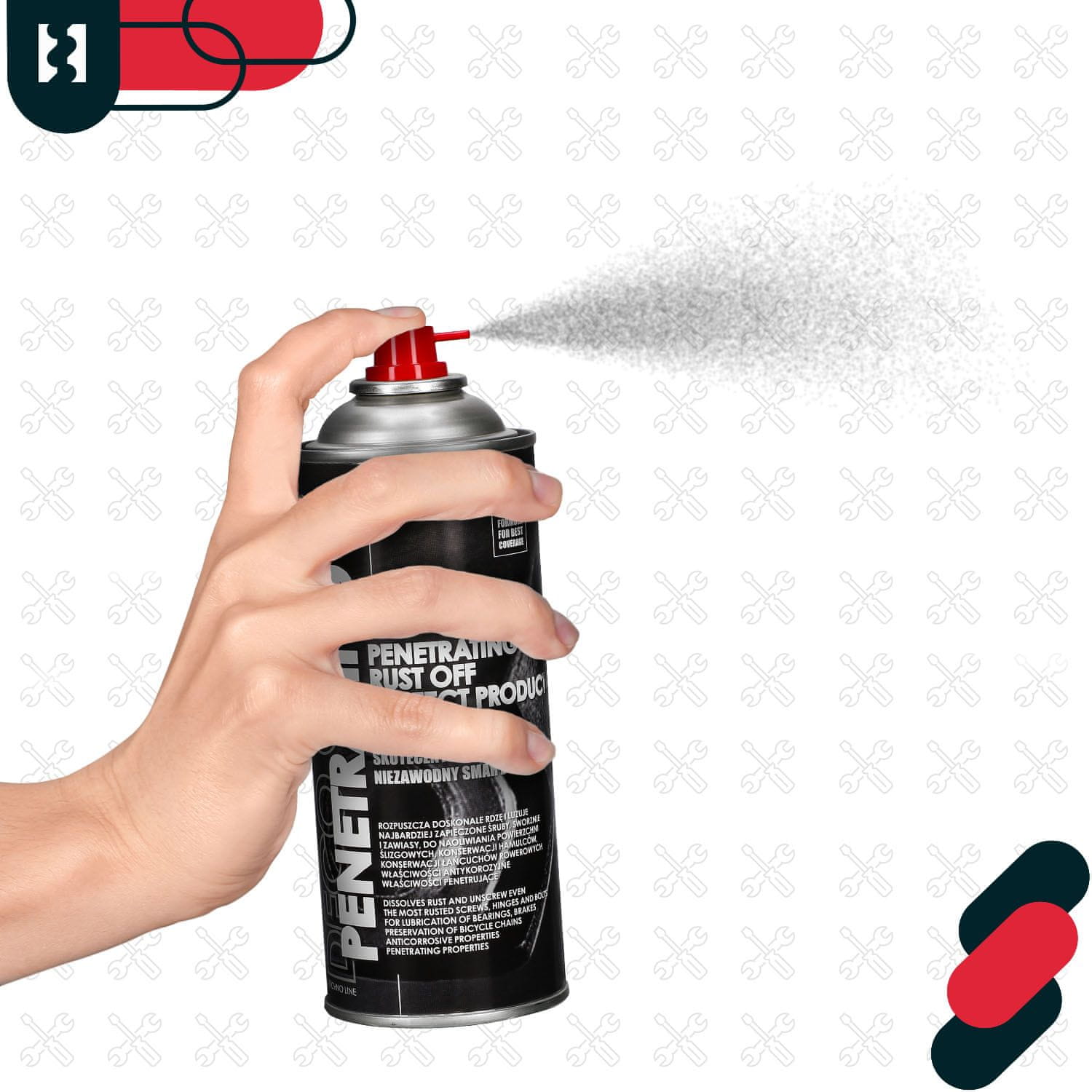 UČINKOVITOST: Odstranjevalec rje je izjemno učinkovit zaradi vsebnosti molibdenovega disulfida (MoS₂), ki zmanjšuje trenje in izboljšuje delovanje mazane površine. Izdelek je odličen za odstranjevanje rje in rahljanje zarjavelih elementov, kot so vijaki, tečaji in zatiči. Zahvaljujoč naprednim prodornim lastnostim odstranjevalec rje doseže tudi najmanjše kapilarne razpoke, kar omogoča učinkovito odmaševanje in zaščito površin pred nadaljnjo korozijo. Ta izdelek je nepogrešljivo orodje za hitro odstranjevanje rje in ohranjanje kovinskih elementov.