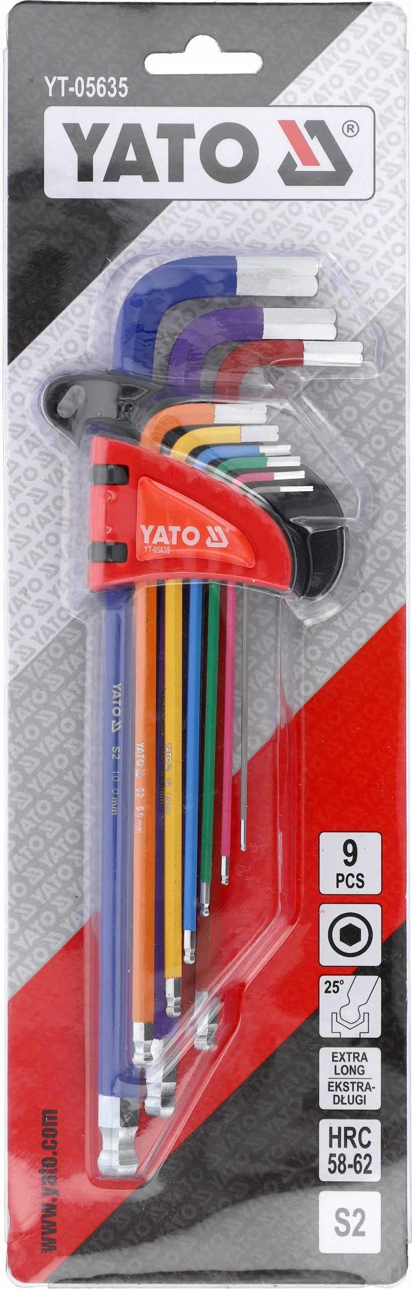 Komplet 9 zelo dolgih YATO imbus ključev velikosti 1,5–10 mm s krogličnim navojem.