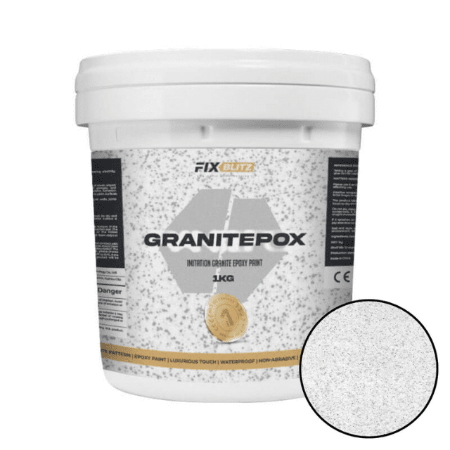 Odkrijte GRANITEPOX, epoksidno barvo, ki vsako površino spremeni v umetniško delo. Od betona do lesa, z lahkoto in slogom vnesite razkošje granita v svoj dom.