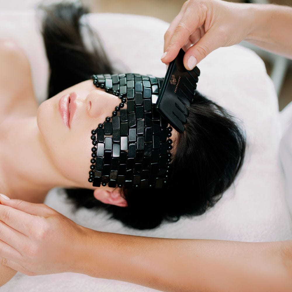 Ustvarite svoj lepotni ritual doma z razkošnimi izdelki za masažo obraza in telesa CRYSTALLOVE. Ta glavnik za masažo lasišča in razčesavanje telesa je navdihnjen z izjemnimi lastnostmi in lepoto naravnih kamnov. Ročno izdelan iz črnega obsidiana, masažni glavnik stimulira energijske točke na obrazu in telesu, odblokira limfno stazo in izboljša krvni obtok. Koža hitro postane nahranjena in sijoča. Masaža lasišča spodbuja rast las in povečuje pretok krvi. Tretmaji z razčesavanje telesa zgladijo kožo in podpirajo zmanjšanje celulita. Masaža ima tudi izjemno sproščujoč učinek.
