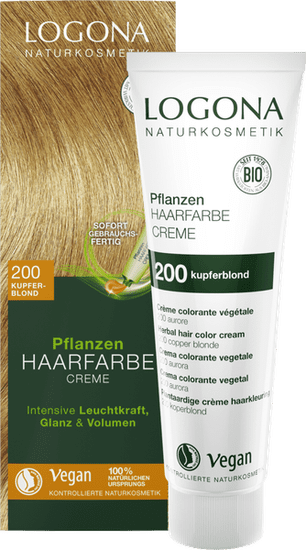 shumee LOGONA Zeliščna barva za lase v kremi 200 KUPFERBLOND (bakreno blond)