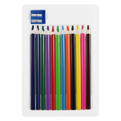 V setu je 12 kakovostnih trikotnih barvic ter priročen šilček, ki zagotavlja, da bodo barvice vedno pripravljene za uporabo.