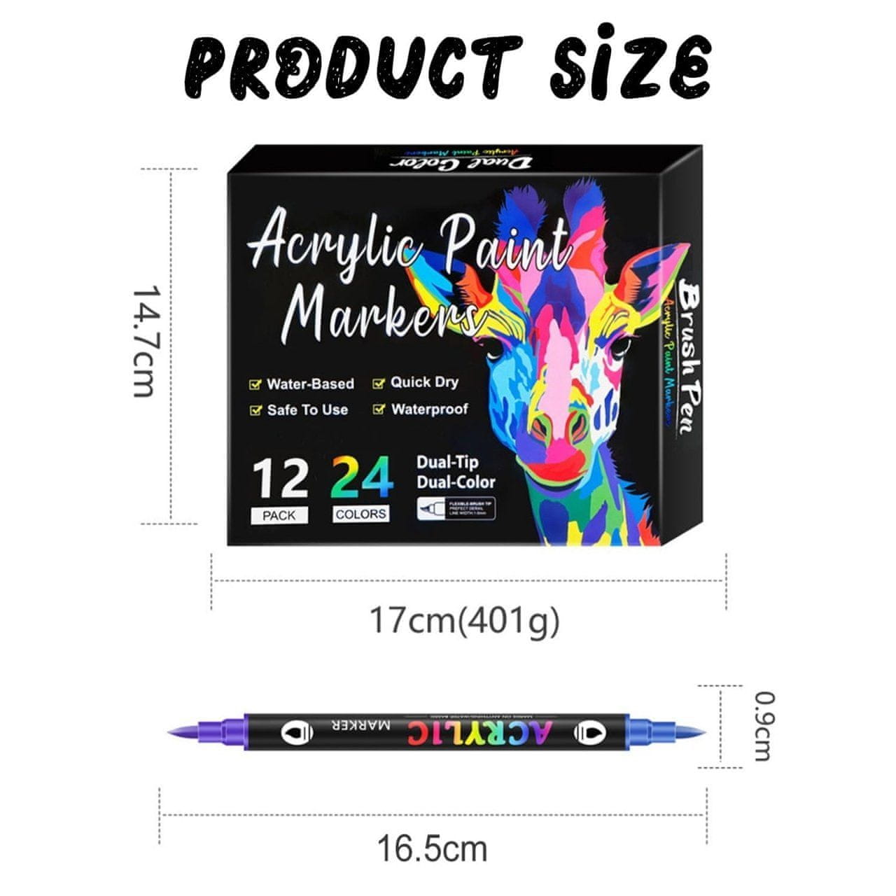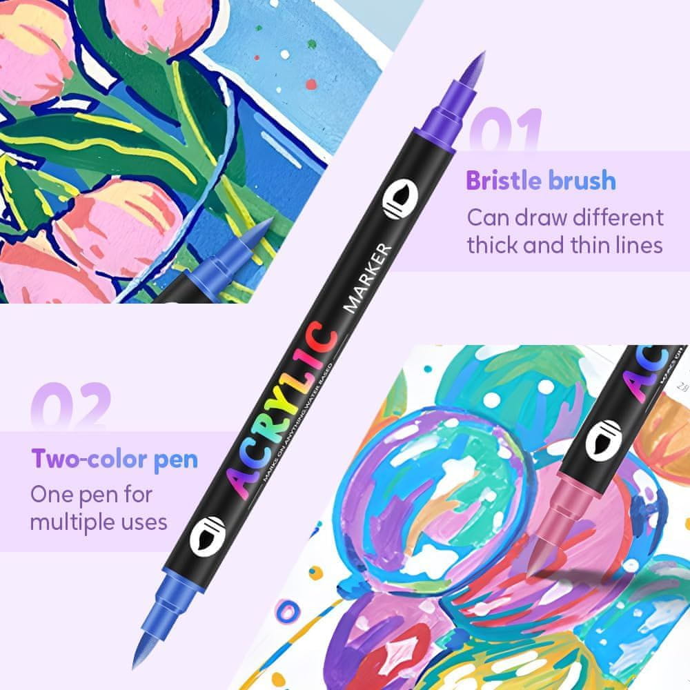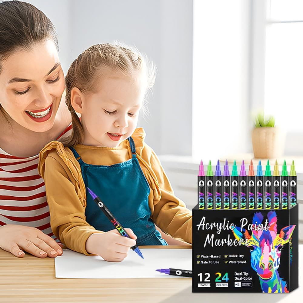 • 24 živahnih barv – Dvojni markerji ponujajo širok spekter odtenkov, ki oživijo vsak projekt, od platna do kamna in keramike.