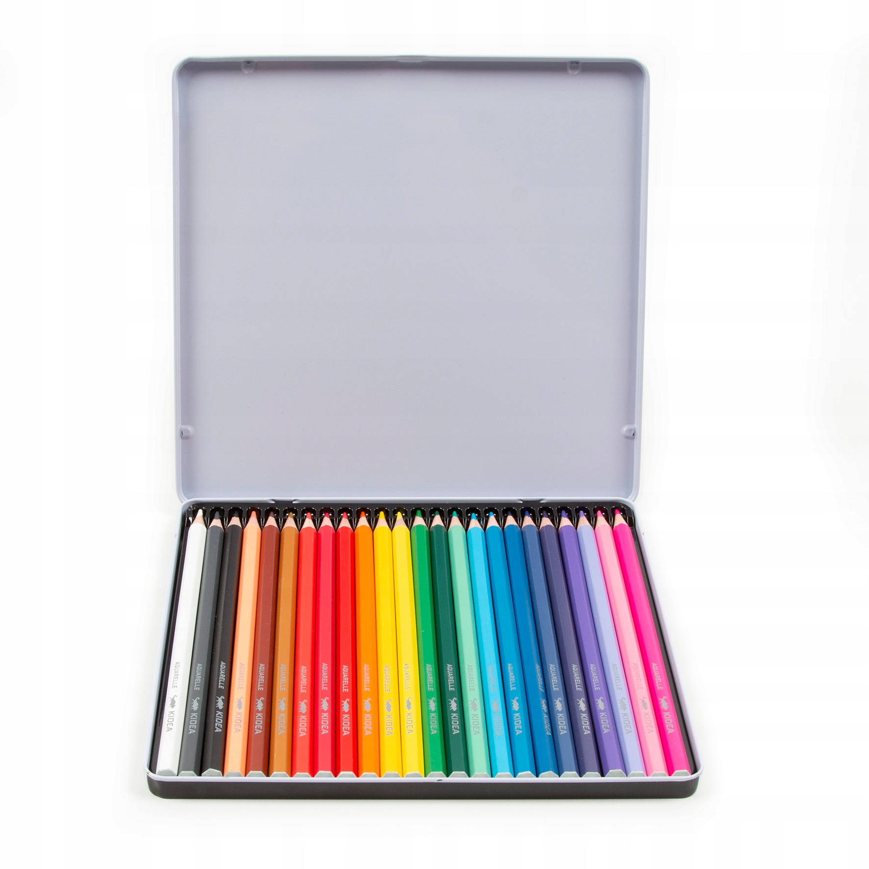 Komplet vsebuje 24 svinčnikov v kovinski škatli.