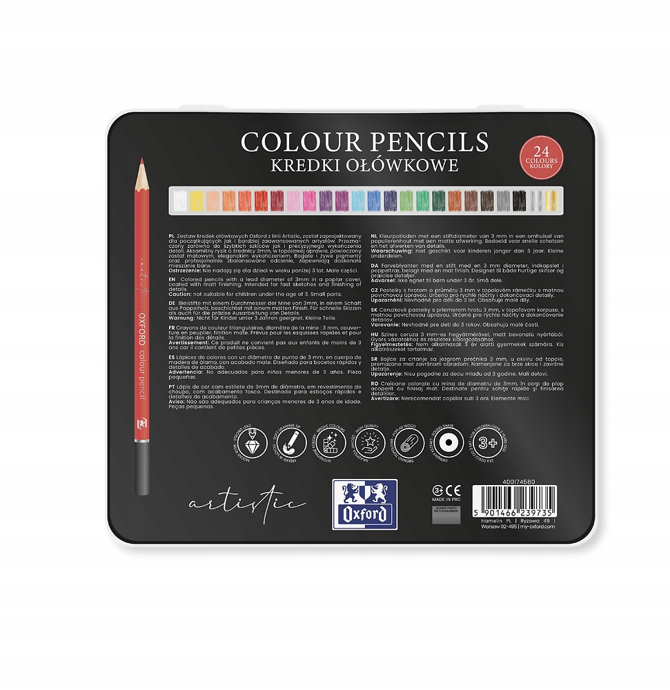 BARVNI SVINČNIKI 24 BARV OXF ŠKATLA KOVINA 400174560 Celoten opis