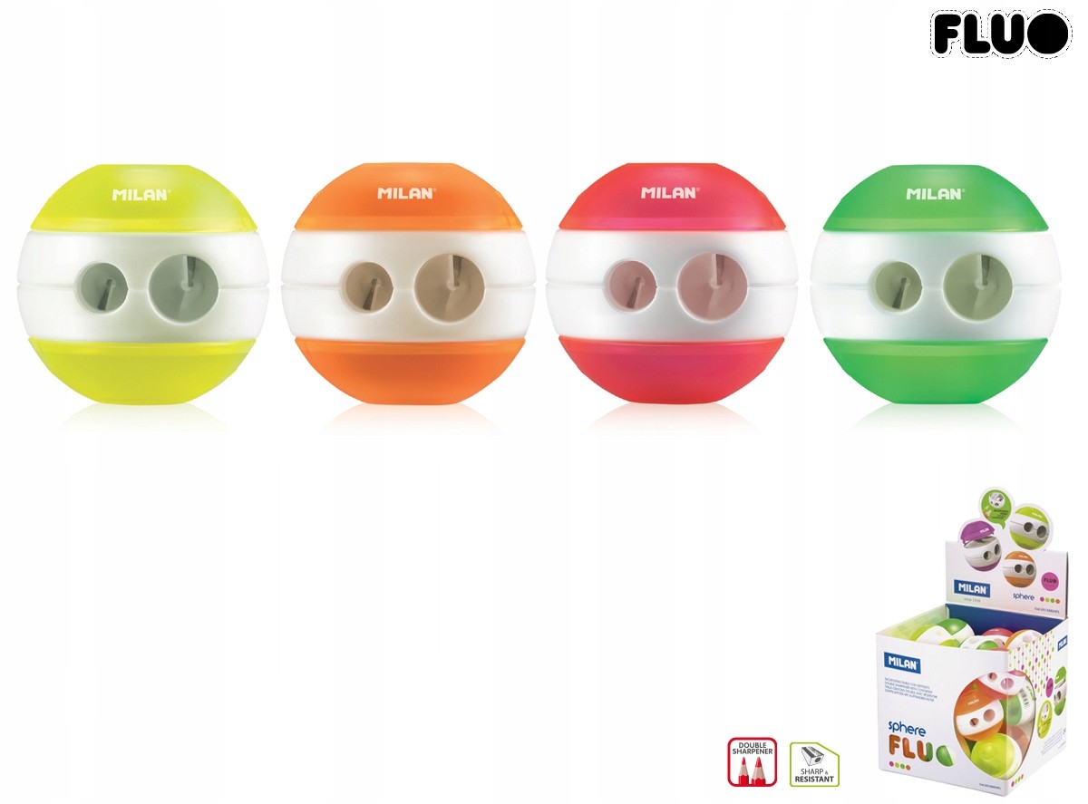 ROČNI ŠOLSKI ŠILČEK Z DVEMA LUKNJAMA, KROGLA, FLUO MILAN Celoten opis
