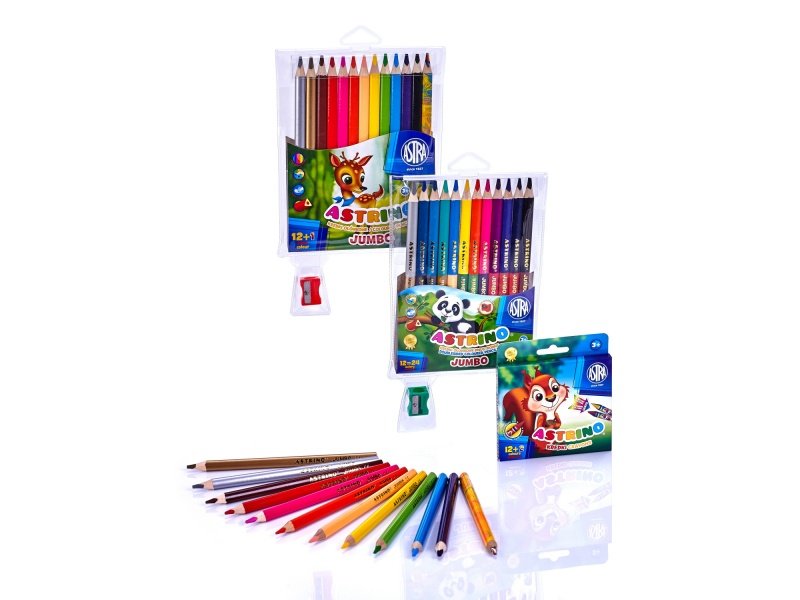 Astra ASTRINO Šolski trikotni barvni svinčniki JUMBO 12 kosov/24barv + svinčnik, 312116003