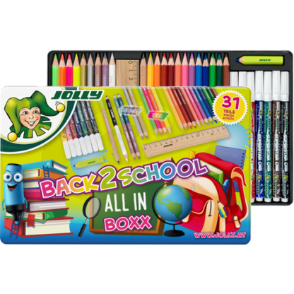 V tej 31-delni JOLLY Nazaj v šolo ALL IN škatli najdeš 12 Superstick otrokom prijaznih barvic v različnih klasičnih barvah + zlata/srebrna, s katerimi lahko izraziš svojo domišljijo!