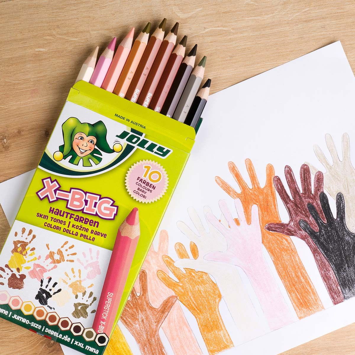 Dobrodošli v čudovitem svetu JOLLY barvic za kožne odtenke – popolnih barvic za male umetnike, ki so specializirani na raznolike odtenke barv človeške kože!