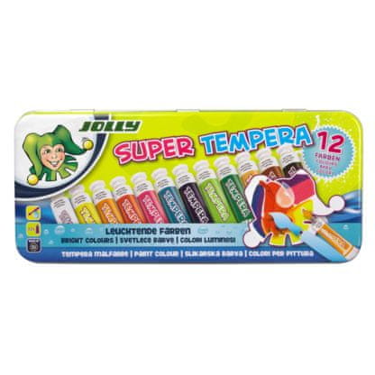 Tempera barve za slikanje Super Tempera Jolly so še posebno žive, prekrivne in preproste za mešanje. Ustvarite svoje barve – lahko jih mešate tudi z vodo in poskrbite za še večjo zabavo ob slikanju! Barve se lahko nanaša na različne površine: platno, karton, les ipd.