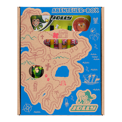 Odpravi se na veliko raziskovalno potovanje z JOLLYEM! Z novo škatlo za pustolovščine boš doživeli povsem novo in ustvarjalno pustolovščino. Reši uganke na zadnji strani škatle in poišči pot do zaklada skozi zapleten labirint.