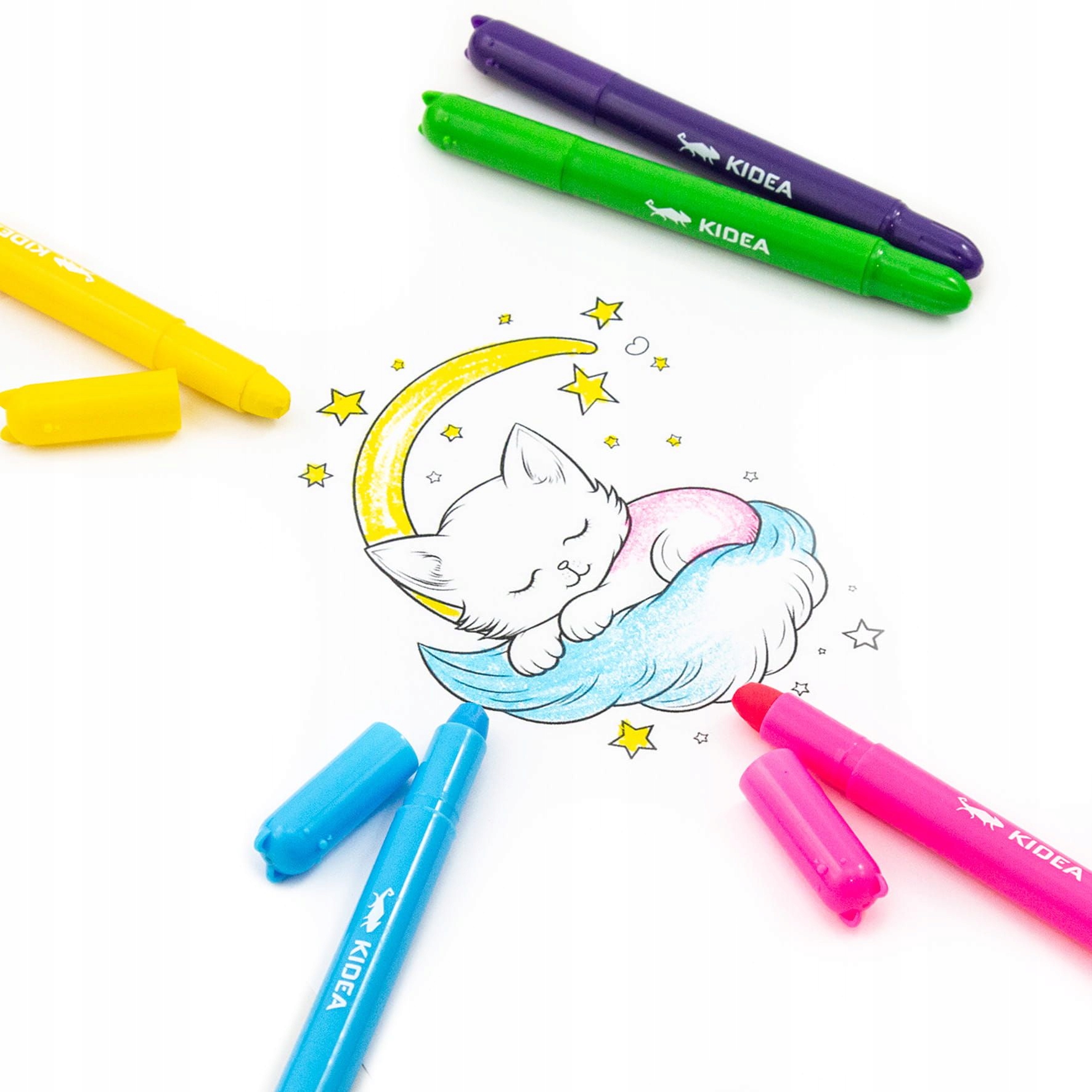 KIDEA Twist-Up gel barvice z motivom mucka ? edinstveno orodje za vsakega malega umetnika! Zahvaljujoč njihovi posebni formuli lahko z njimi rišete kot z navadno barvico, jih razmažete kot pastel ali barvate z vodo kot akvarele .