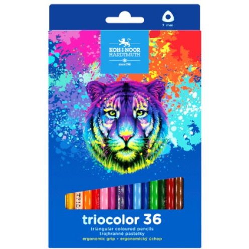 TRIOCOLOR TRIKOTNI BARVNI SVINČNIKI 36 BARV TIGER KOH I NOOR