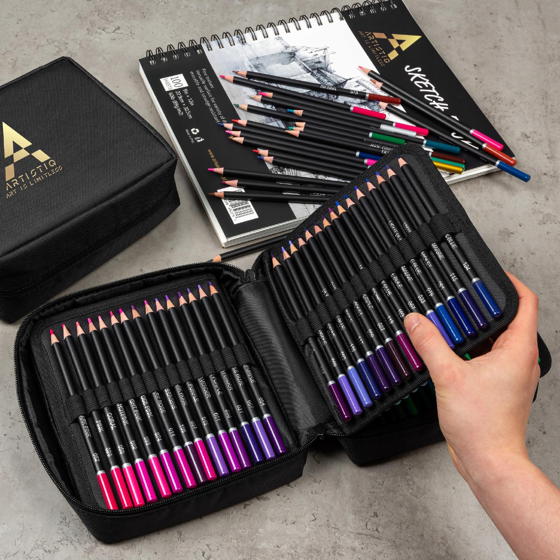 Profesionalni komplet barvnih svinčnikov priznane blagovne znamke ARTISTIQ . Komplet vsebuje 120 edinstvenih barv , ki zagotavljajo ustrezno barvno paleto in bodo uporabljene pri risanju.