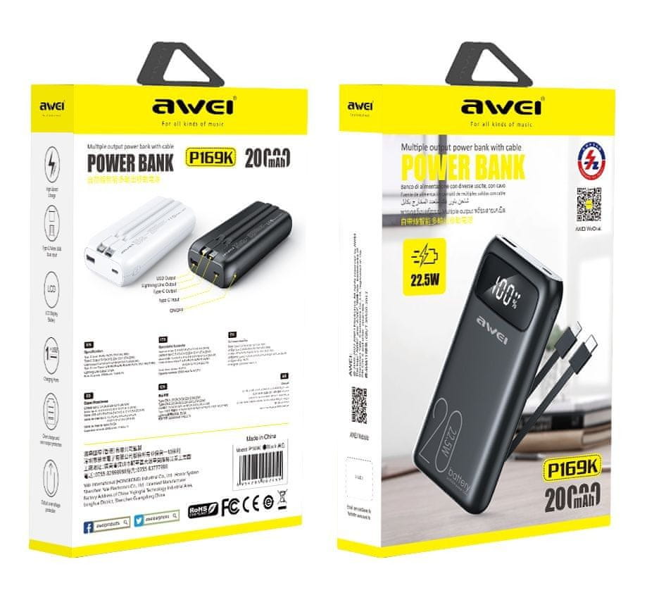 Powerbanka P169K ima kapaciteto 20.000 mAh, pri čemer se še vedno trudi ohraniti čim manjše dimenzije. Ena izmed njenih prednosti je zaslon, ki prikazuje trenutno stanje polnjenja powerbanke, in dva vgrajena kabla s priključkoma USB-C in Lightning. Tako s seboj ne morate nositi dodatnih kablov in vedno veste, koliko energije vam še ostaja za polnjenje vaših naprav.