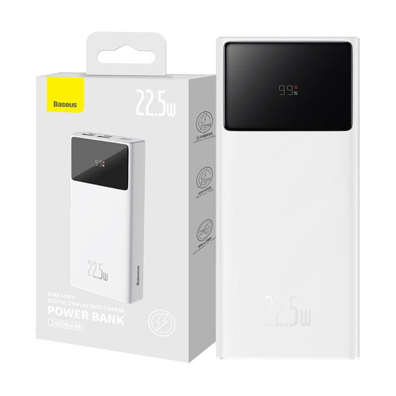 BASEUS Powerbank Star-Lord 20000 mAh, 2xUSB, USB-C, 22,5 W (bela)