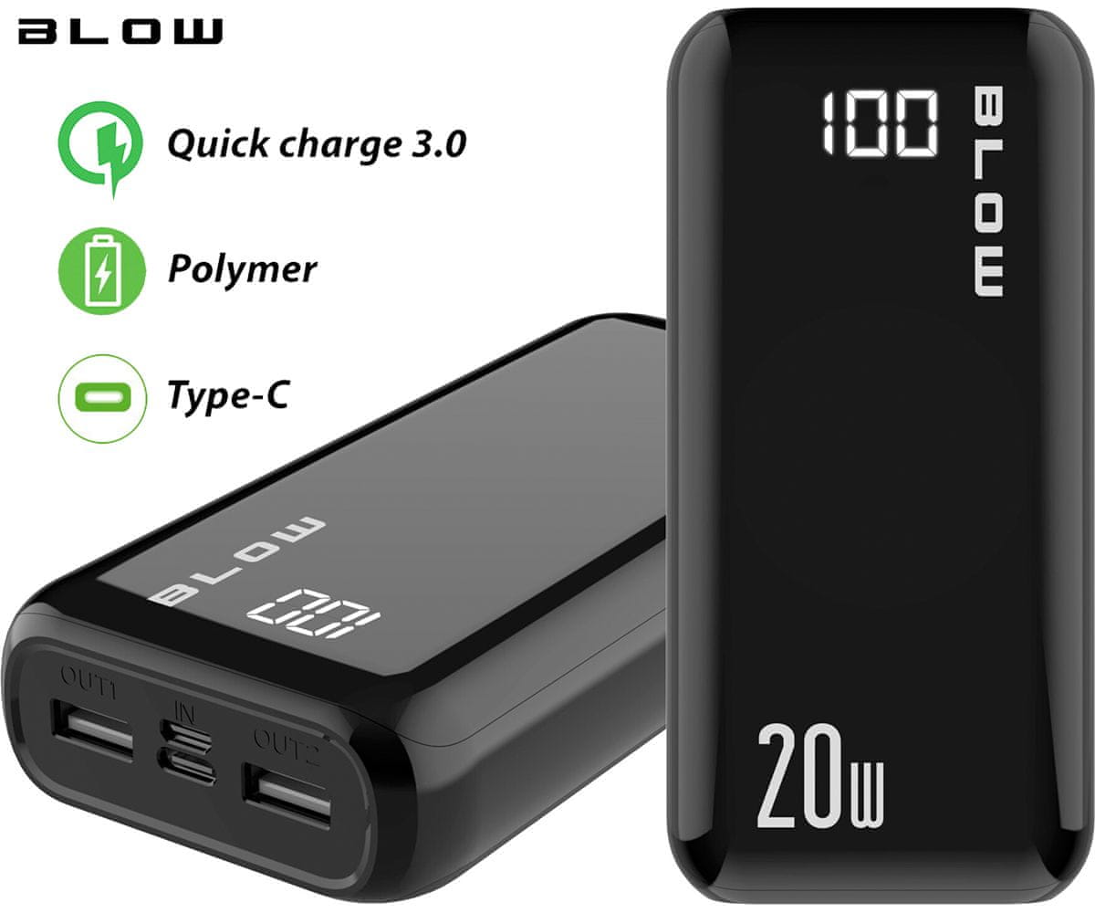 Blow PB30A Powerbank, 30000 mAh, Polymer, QC3.0, LED zaslon, Type-C
